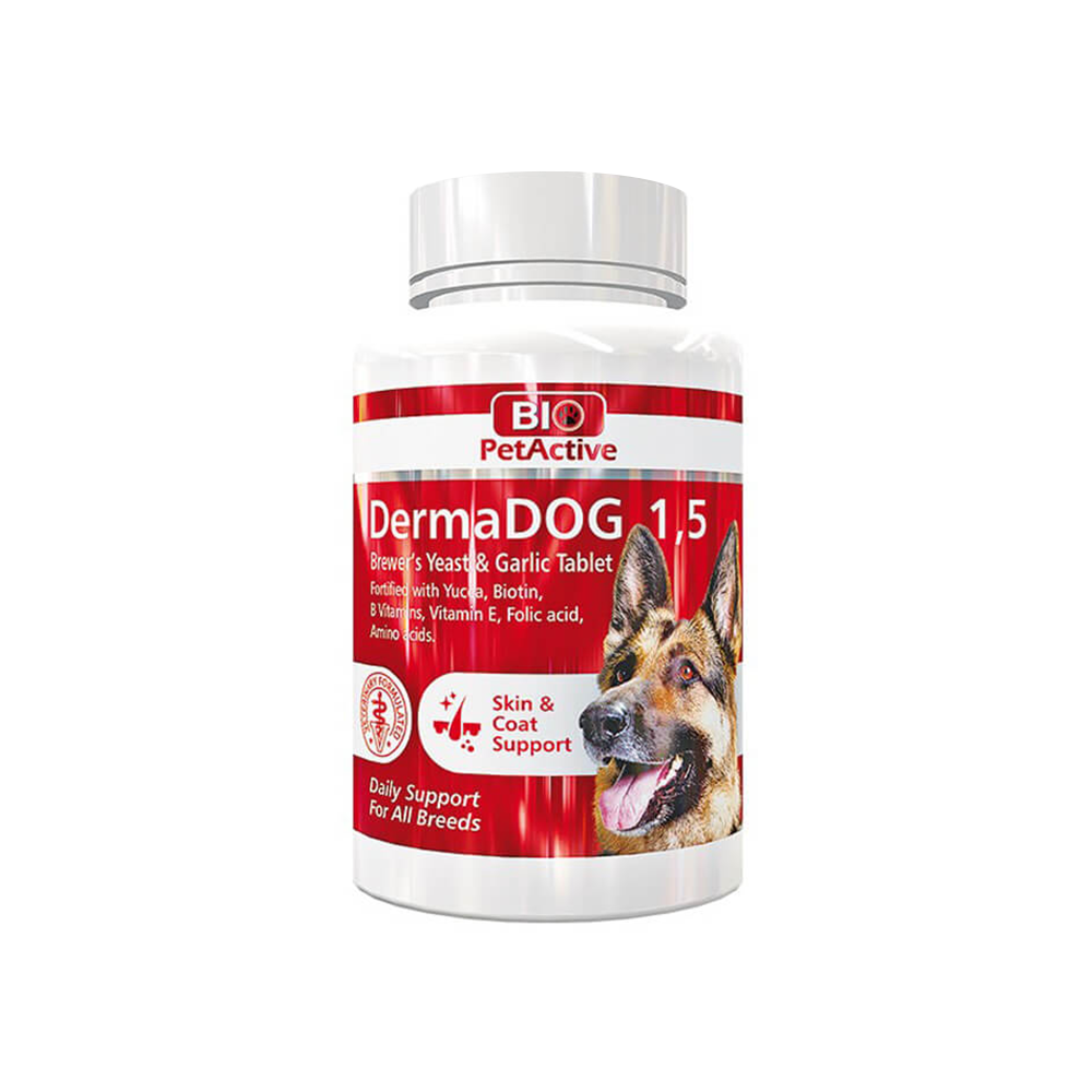 Biyopet Active Dermadog Büyük Irk Sarımsaklı Maya Tableti (150 gr), evcil hayvanınızın cildinin ve tüylerinin sağlığını korumak için özel olarak formüle edilmiş bir üründür. Bu lezzetli tahıl-free tabletler, büyük ırk köpekler için uygundur ve köpeğinizin beslenme ihtiyaçlarını karşılamaya yardımcı olur.