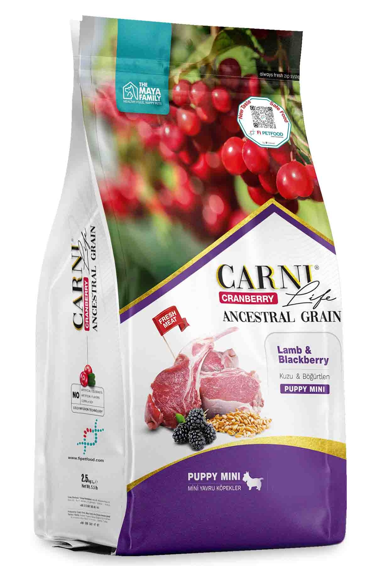 Yavru köpeklerin, yetişkinlik evrelerinde protein alerjisi yaşamamaları hedefiyle çoklu protein kaynağı ile formülize edilen Carni Life Cranberry Ancestral Grain, özenle seçilmiş hayvansal proteinlerin yanı sıra, düşük glisemik indekse sahip kılçıksız buğday içermektedir.