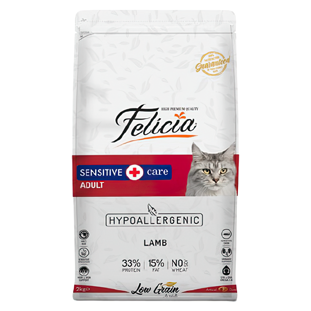 Felicia Sensitive Care Hipolojenik Az Tahıllı ve Kuzu Etli Yetişkin Kedi Maması, kedi sahiplerinin sevgili evcil dostlarının beslenme ihtiyaçlarını en iyi şekilde karşılamayı amaçlayan özel bir formülasyondur. Bu mama, hassas sindirim sistemine sahip kediler için özel olarak geliştirilmiştir ve alerjik reaksiyon riskini en aza indirmeyi hedefler.
