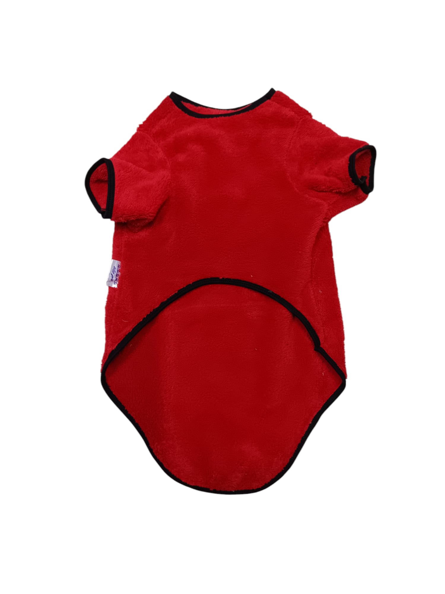 Kırmızı peluş kumaşıyla dikkat çeken bu kıyafet, büyük ve orta ırk köpeklere uyacak şekilde tasarlanmıştır. Yumuşak ve kaliteli malzemeden üretilmiştir, bu sayede köpeğinizin üzerinde rahatlıkla giyebileceği bir kıyafete sahip olursunuz.