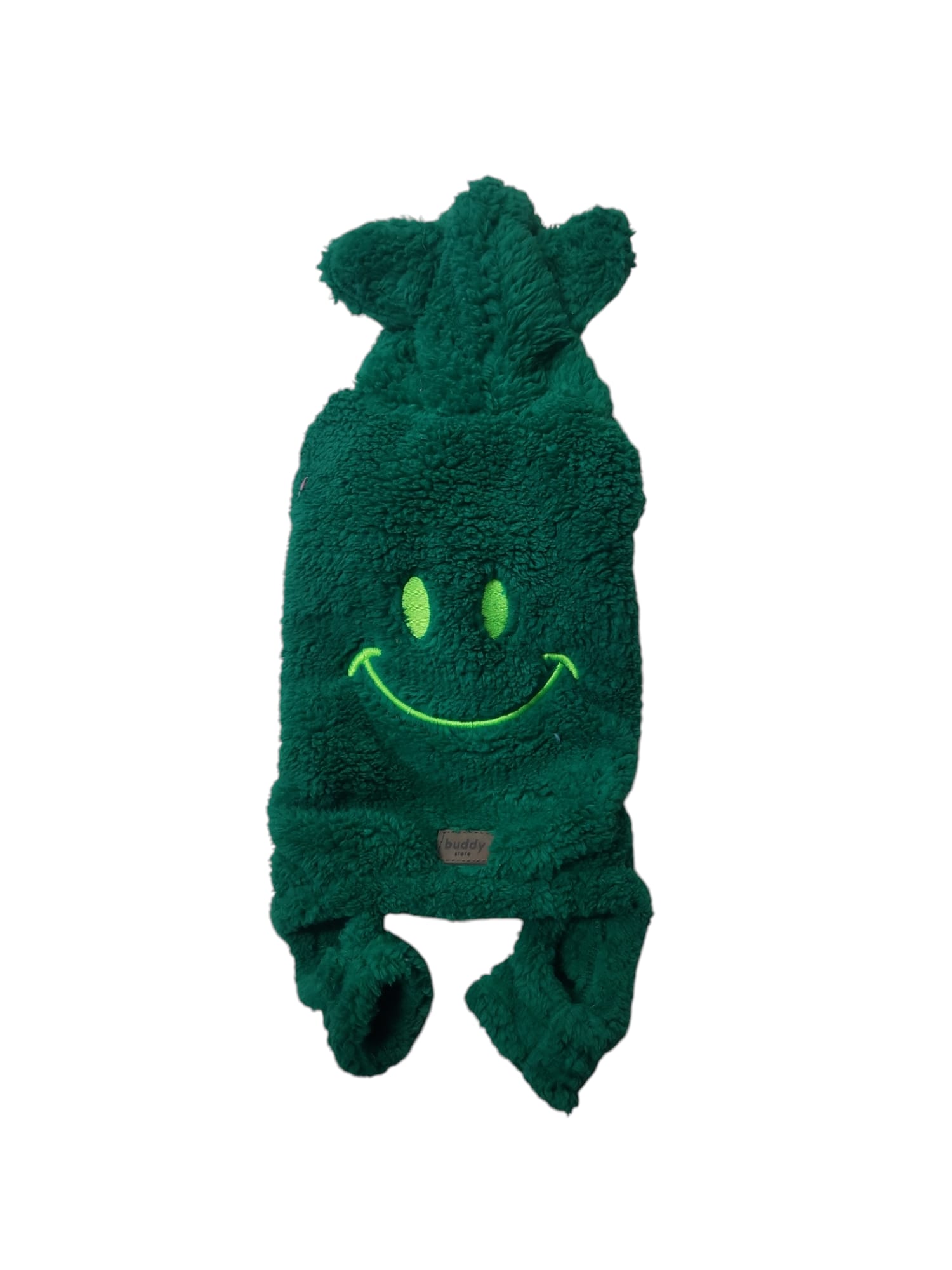 Polar Yeşil Kapşonlu Tulum Gülen Yüz Kedi Köpek Kıyafeti