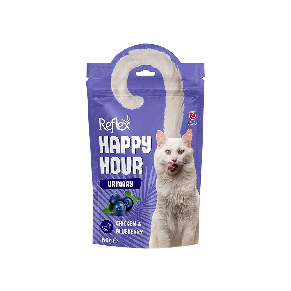 Reflex Happy Hour Urinary tavuklu ve yaban mersinli kedi ödül maması, özellikle idrar yolları sağlığına özen gösteren kediler için özel olarak formüle edilmiştir. İçerdiği doğal et özleri ve yaban mersini ile sağlıklı ve lezzetli bir alternatif sunar.
