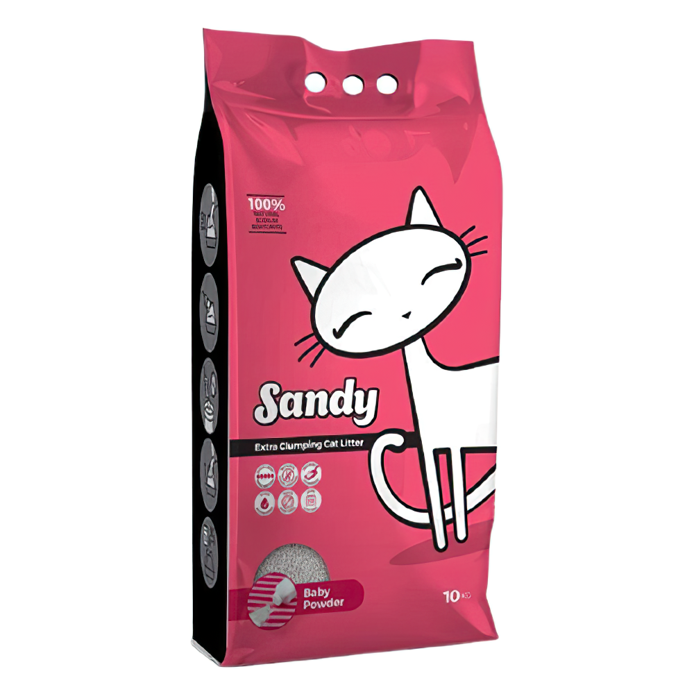 Sandy Doğal Sodyum Bentonit Bebek Pudrası Kokulu İnce Taneli Kedi Kumu, evcil hayvanınızın hijyen ve rahatlığı için özel olarak tasarlanmış bir üründür. 10 litrelik ambalajıyla uzun süre kullanım imkanı sunar.