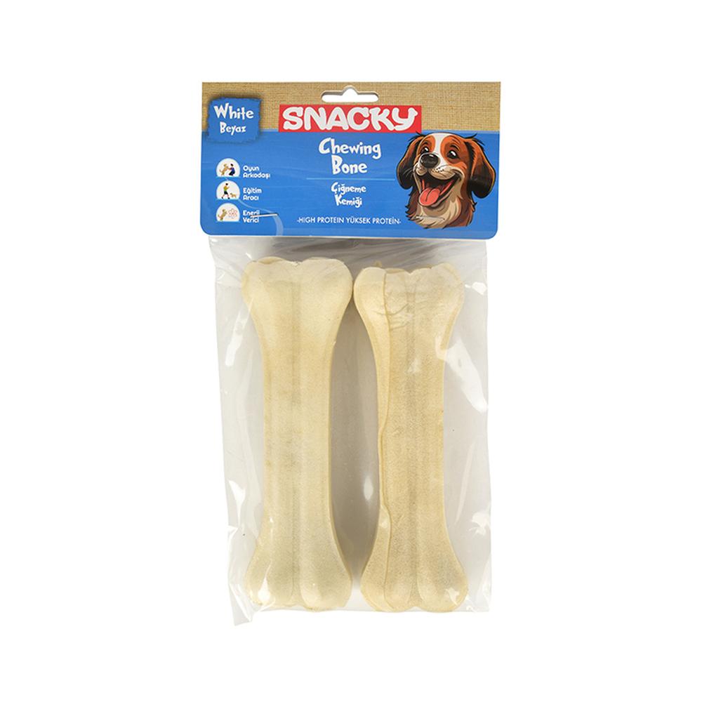 Snacky Beyaz Köpek Çiğneme Kemiği, köpekleriniz için üretilmiş doğal ve sağlıklı bir oyuncak ve atıştırmalıktır. Bu 15 cm uzunluğundaki kemiğin içeriği tamamen doğal bileşenlerden oluşmaktadır ve hiçbir şekilde yapay katkı maddeleri içermez.