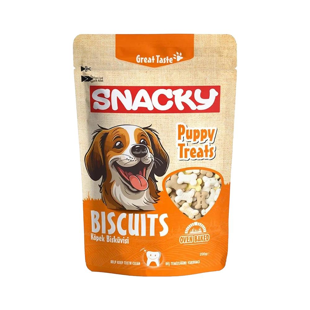 Tazeliğini ve lezzetini uzun süre koruyan Snacky Etli Yavru Köpek Bisküvisi, köpeklerinizin severek yiyeceği bir atıştırmalık olacaktır. Ek olarak, ürünümüz gluten içermez ve yapay renklendirici ve koruyucu madde içermediği için, köpeklerinizin sağlığı açısından da tamamen güvenlidir.