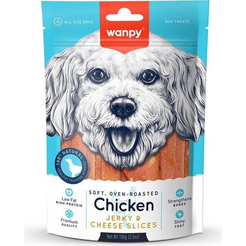 Wanpy Yumuşak Tavuk & Peynir Dilimleri 100 gr Köpek Ödülü, sevimli dostunuzun sağlıklı ve lezzetli atıştırmalıklarını karşılamak için özel olarak tasarlanmış bir üründür. Özellikle köpeklerin büyük bir sevgiyle tüketeceği tavuk eti ve peynirin mükemmel bir kombinasyonu ile sunulan bu ödül, yüksek kaliteli ve doğal bileşenlerden üretilmiştir.